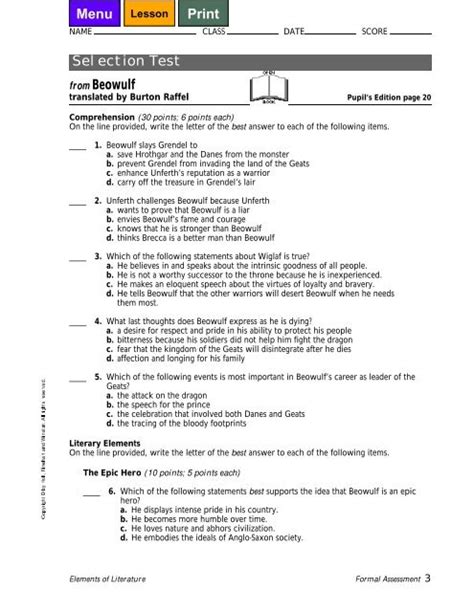 Free Reading selection test 2 from beowulf answers Get Now PDF